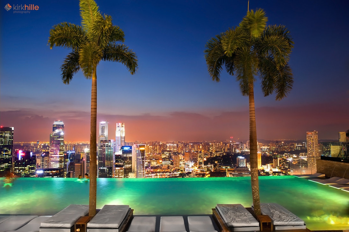 Первый бассейн, о котором пойдет речь, находится в сингапурском отеле с казино Marina Bay Sands. Представьте себе три двухсотметровых здания, на которых расположен огромный «Поднебесный парк» (SkyPark) в виде лодки площадью почти двенадцать с половиной тысяч квадратных метров.