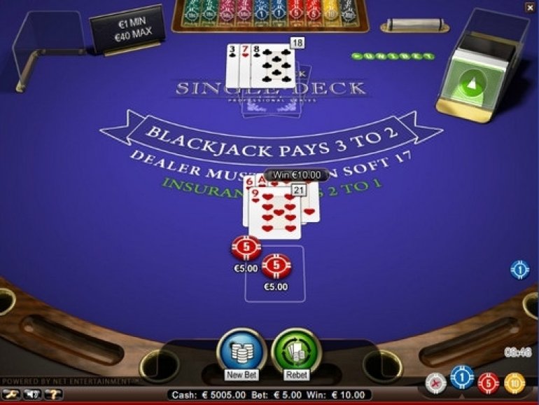 Казалось бы, разница небольшая, и у посетителей игорных домов не так много поводов для беспокойства. Должно быть, это и является причиной того, что клиенты казино не беспокоясь играют с такими заниженными коэффициентами. Все же, блэкджек одной колодой встречается не так часто, как хотелось бы, а играть таким образом для клиента выгодней, чем двумя или более колодами. В интернете можно играть онлайн в блэкджек одной колодой от компании Net Entertainment.