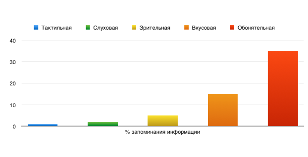 «Кто владеет запахом, тот владеет сердцами людей», - писал Патрик Зюскинд в романе «Парфюмер». Аромамаркетинг в казино позволяет игорным заведениям управлять эмоциями людей и их поведением. Можно даже разработать аромабренд, который будет ассоциироваться с конкретным казино, напоминать клиенту о себе, когда он почувствует этот запах, вызывать неосознанное желание прийти в казино снова. Возникает мощная эмоциональная связь между брендом и потребителем – мечта для маркетолога! Из всех органов чувств, обонятельная память оказывает самое большое влияние на эмоции. Сравните, в частности, 35% обонятельной информации, которую человек может запомнить, с 1% тактильной – перевес очевиден. Воссоздание ярких и живых воспоминаний благодаря ароматам возможно из-за того, что обоняние тесно связано с лимбической системой. Итак, человек запоминает 2% слуховой, 5% зрительной, 15% вкусовой информации, кроме тактильной и обонятельной информации, упомянутой выше. Лучше это раскроет инфографика: