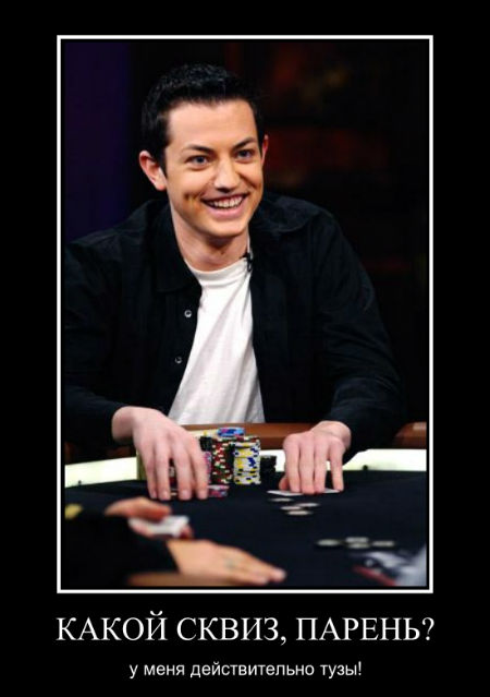 Главное в применении сквиз-плейя – точность в чтении оппонентов, соперники, имеющие определенный игровой стиль (лузовый игрок, делающий рейзы, лузовый, ставящий коллы) и самое главное – ход ва-банк, не оставляющий шансов на победу противникам. Также не стоит часто использовать сквиз-плей в своих розыгрышах, так как это мощное оружие, применять которое нужно с осторожностью в самых подходящих ситуациях.