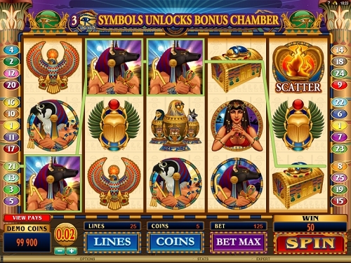 Без всяких сомнений Throne of Egypt это один из лучших слотов Microgaming. Благодаря четырём свои особенным функциям вы можете выиграть 500,000 кредитов. Этого вполне хватает для того, чтобы шикарно слетать в Египет и отлично провести там время, изучая оставшиеся с времен Древнего Египта реликвии.