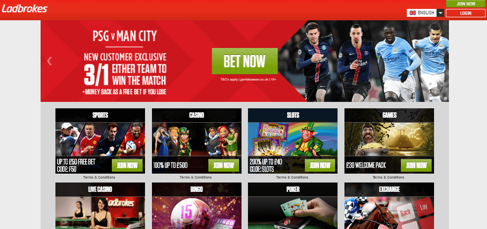 Компания Ladbrokes представлена в виде портала, который объединяет в себе все направления пои предоставлению азартных услуг.