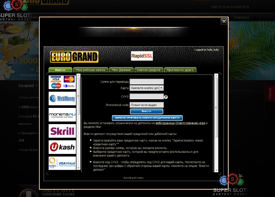 В принципе, об этом казино слаживается только положительное мнение, и говорить о нем можно бесконечно, но мы советуем вам самим посетить это азартное онлайн заведение и лично убедиться в этом. Ведь только благодаря личной практике, получив массу удовольствия и положительных эмоций, проверив на себе уровень сервиса, можно в полной мере оценить качество казино ЕвроГранд и дать ему истинную оценку, на которую вполне заслуживает.