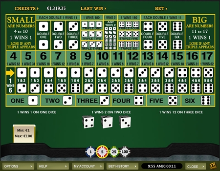 Эта игра представляет собой один из видов игры в кости, только суть ее не в том, чтобы выпала максимальная выигрышная комбинация при броске, а в том, чтобы игрок предугадал, какая именно комбинация выпадет.