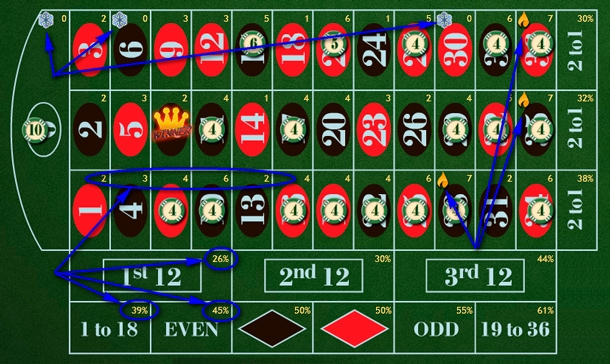 Если у Вас хорошо работает воображение, Вы уже представили, что вариант, когда может выпасть число, на которое Вы не ставили, может наступить не так уже и часто.