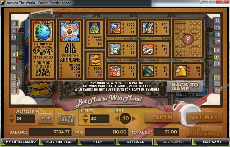 В некоторых игровых клубах тестировать данный игровой автомат можно даже в бесплатном режиме. Но в любом случае, на минимальных ставка играть можно пользователю с любым уровнем доходов. Так что спешите побродить всеми городами и странами мира, познакомьтесь с их главными достопримечательностями. Как и любой другой игровой автомат, «Around the world» сопровождается музыкой. Мелодия совсем не навязчивая, она даже может стимулировать у получению новых знаний и открытию дальних горизонтов.