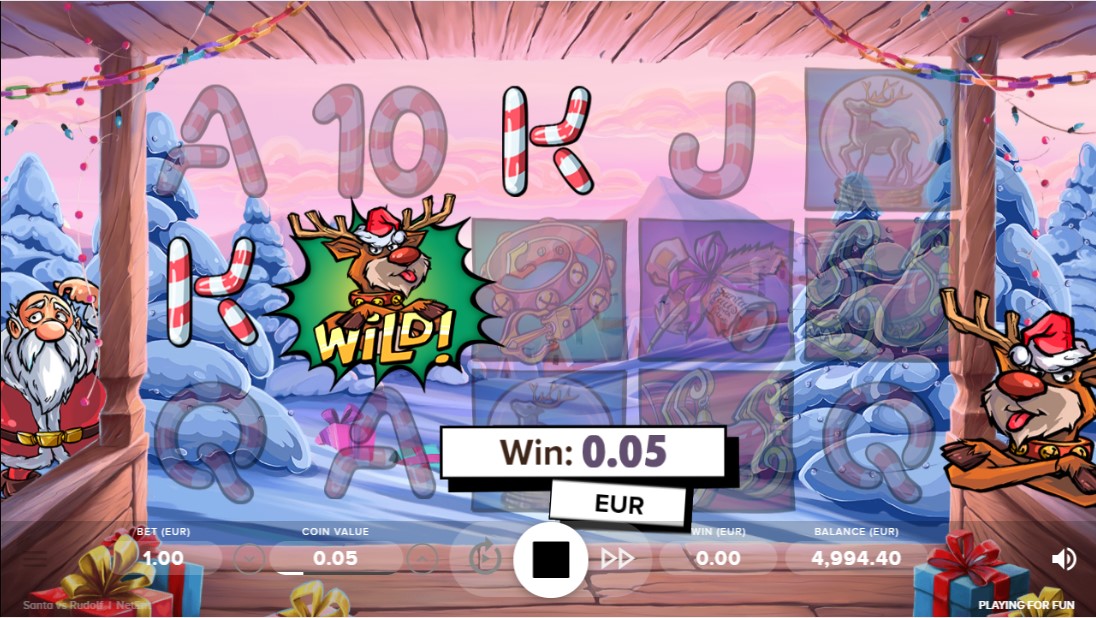 Как понятно из названия автомата, главный персонаж – олень Рудольф, в ходе игры он выступает Диким Символом, а в сочетании со своим приятелем, Символом Разброса.