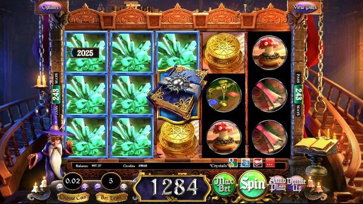 Анимация в игре просто восхитительна: самоцветы высыпаются из мешочка, Алкемор достает магическую книгу, поворачивается к барабанам, потом смотрит на игрока, хлопает в ладоши, когда у вас выпадает хороший приз, поглаживает бороду и немного левитирует в воздухе. Все это создает ощущение живой игры, в которую еще к тому же была добавлена интерактивность. Вы можете остановить барабаны в любой момент и повлиять на исход вращения. Вы можете удвоить выигрыш и выполнять другие традиционные действия, либо вообще выбрать автоигру и наблюдать за игровым процессом, не напрягаясь.