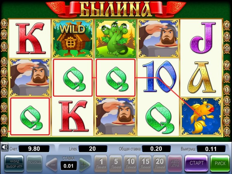 «Былина» - это 20-линейное азартное онлайн-приложение предлагает пользователю вместе с богатырем пуститься на поиски его суженой, которая ждет не дождется своего любимого.