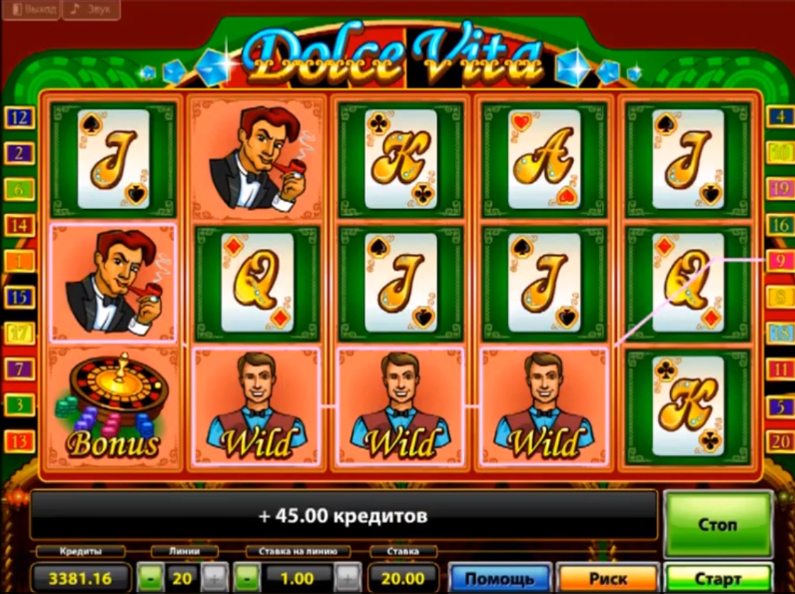 К тому же, Dolce Vita– это один из немногих видеослотов, играя в который, можно параллельно наслаждаться и его фоновой музыкой. Классический джаз с вкраплением в него фоновых звуков, привычных любому посетителю игровых заведений, создаёт неподражаемое ощущение пребывания в действительно приятном месте.
