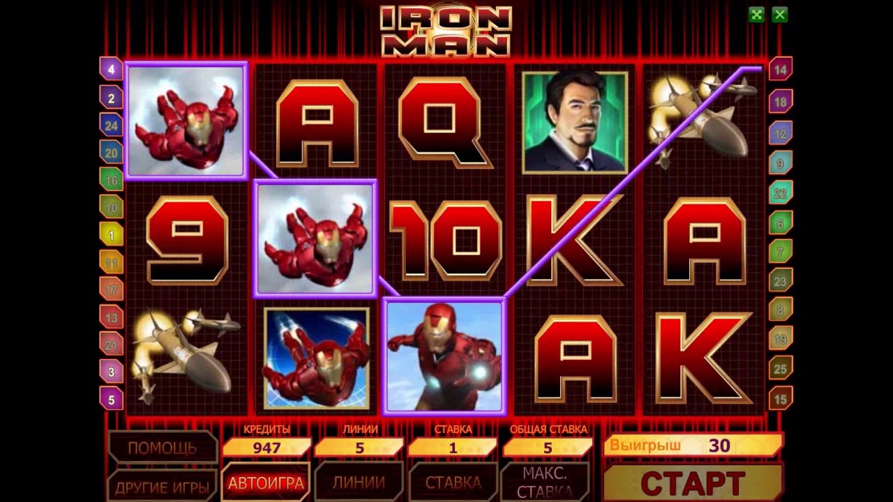 Одним из новых игровых автоматов является слот по мотивам известных комиксов Марвел "Железный Человек". Слот так и называется - "Iron Man".