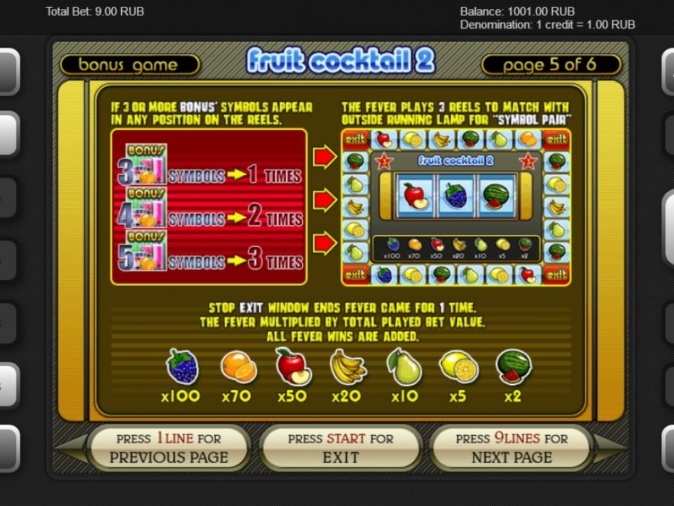 Вторая часть игрового автомата Fruit Cocktail - это один из многочисленных классических тематических слотов, которые сумели выделиться среди других. Он создан так, чтобы выглядеть как игровые автоматы, которые можно найти в обычных казино, что вызывает у игроков ностальгическое чувство.