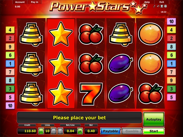 Именно «Power Stars» обладает 5-ма игровыми барабанами и 10-ма линиями выплат, с минимальной ставкой в 0,40 кредитов, а максимальная ставка может составлять 100 кредитов.