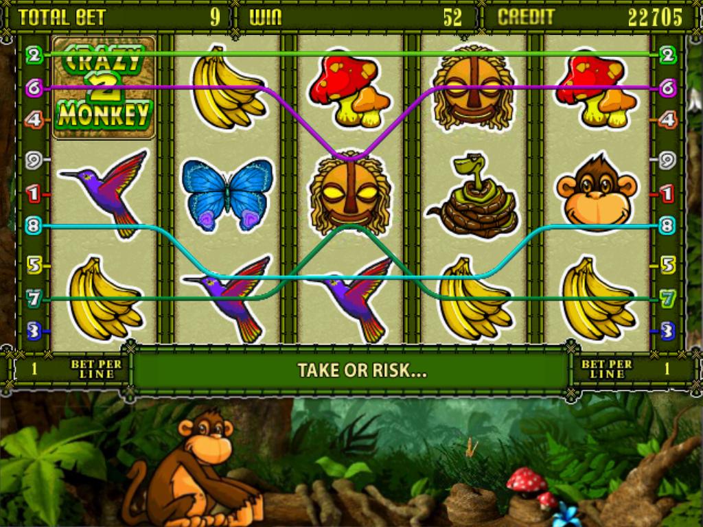В игровом автомате Crazy Monkey 2 игроку представится возможность посетить дикие джунгли, при этом на своем пути встречая лягушек, змей, обезьянок, бабочек и прочих жителей леса.
