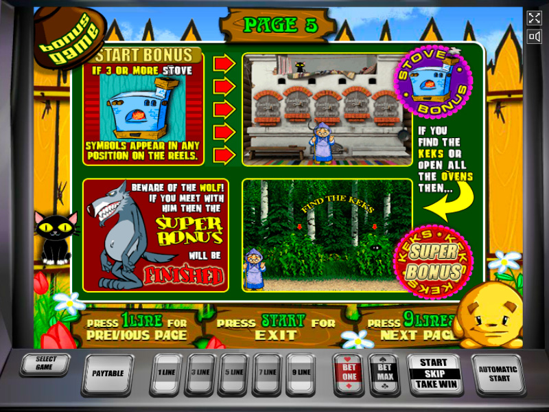 Игровой автомат Keks являет собой видео-слот на пять барабанов с возможностью прироста выигрыша в риск-игре, получения дополнительных выигрышей в бонусной игре или же супербонусной игре.