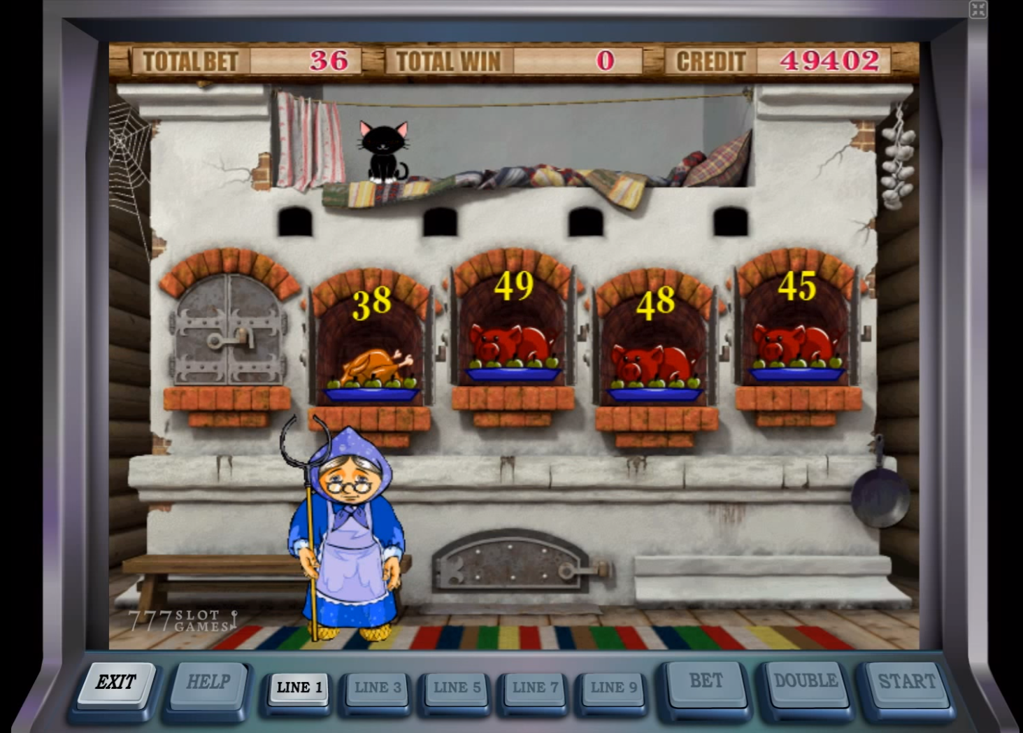 Три и больше идентичных предмета в линии предоставляют выигрыш согласно таблице, увидеть которую можно нажав клавишу Help.