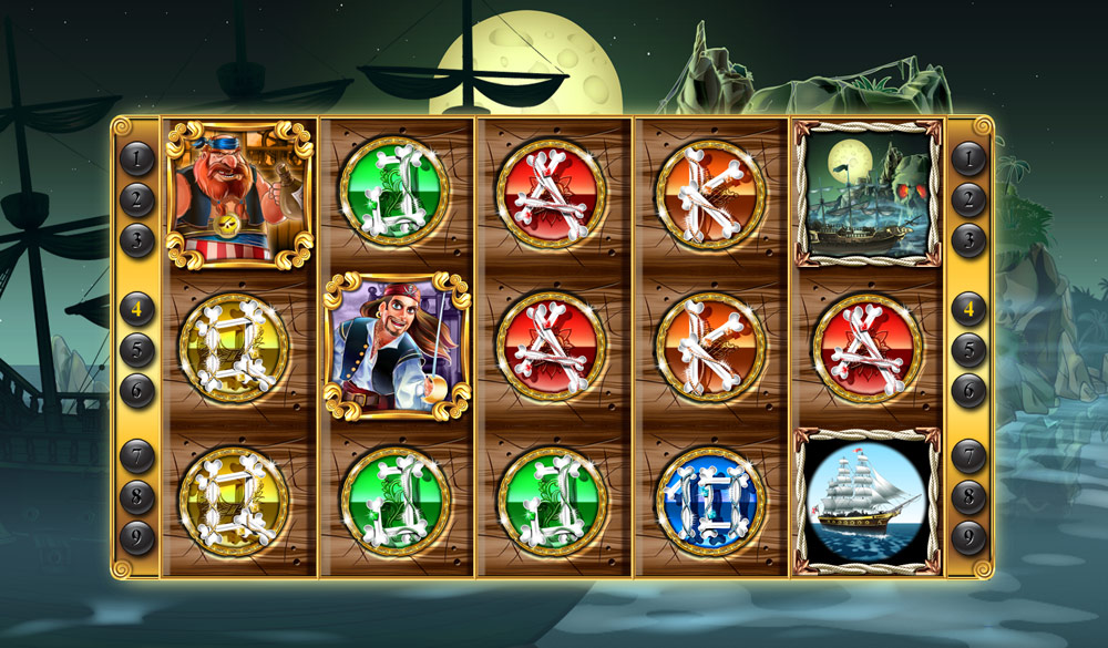 Все приключения на автомате устроены на 5 активных барабанах с 15 линиями для выплат. Главными символами в слоте служат изображения именитых пиратов: