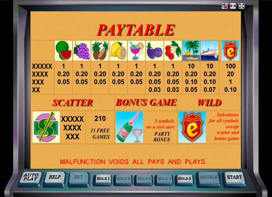 Слот машина "Шампанское" (Champagne) представляет собой видео-автомат на пять барабанов, двадцать одна игровая линия.