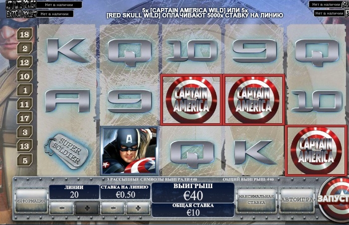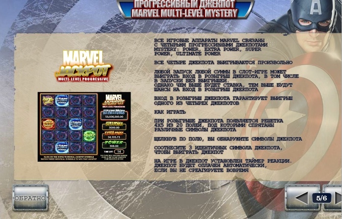 Разработчики ввели в игровой автомат «Капитан Америка» уникальную опцию динамического джек-пота, с потенциальной вероятностью выбить сразу три из них.