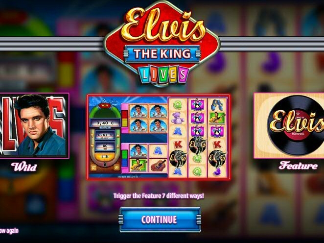 Игровойавтомат Elvis The King Lives. Как видно из самого названия, видое-слот посвящен Элвису Пресли. Эта игра – детище разработчика WMS (Williams Interactive) – благодаря своему отличному визуальному оформлению переносит гемблера в эпоху зарождения рок-н-ролла. В качестве саундтрека звучат композиции Blue Suede Shoes, Hound Dog и Viva Las Vegas, ставшие шлягерами.