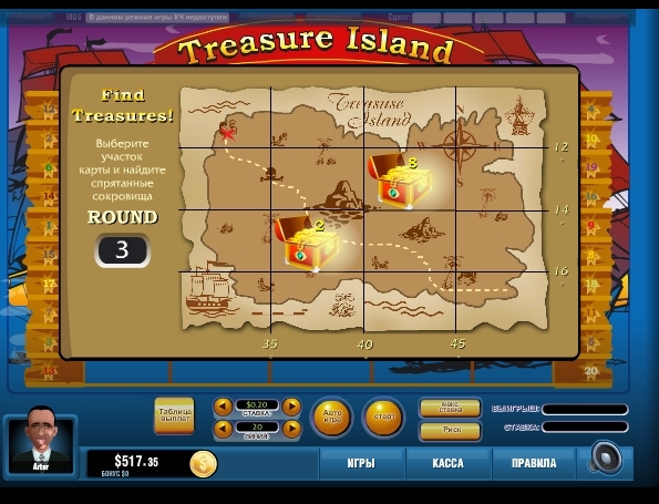Главное правило: щедрая ставка – щедрый выигрыш. Будьте внимательны, в случае если карта сокровищ выпала 3 раза – гарантировано получаете бонусный раунд.