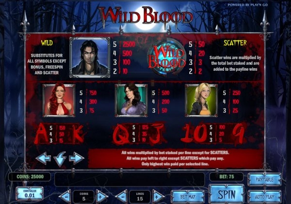 Шведская компания виртуальных автоматов Play`n Go представила свою новую разработку – игровой слот «Wild Blood», который рассчитан на почитателей фильмов ужасов и мистических триллеров.