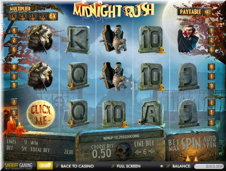 Любопытным нововведением «Полуночной суеты» является «Click me» - бонусный раунд, который активируется совпадением комбинации из трех особенных лунных символов – это, как минимум.