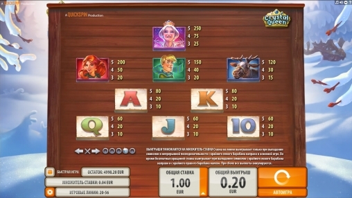 Волшебный мир классических сказочных персонажей вдохновил шведскую компанию Quickspin на создание новых игровых автоматов. В основу игры CrystalQueen лег сюжет сказки Ханса Кристиана Андерсена «Снежная королева». Вместе с Гердой игроки переживут необыкновенные приключения в поисках непослушного мальчика Кая, попавшего в плен к Снежной Королеве. Множество удивительных событий вместе с уникальными особенностями начисления выигрыша сделают время, проведенное в игре, прибыльным и интересным.