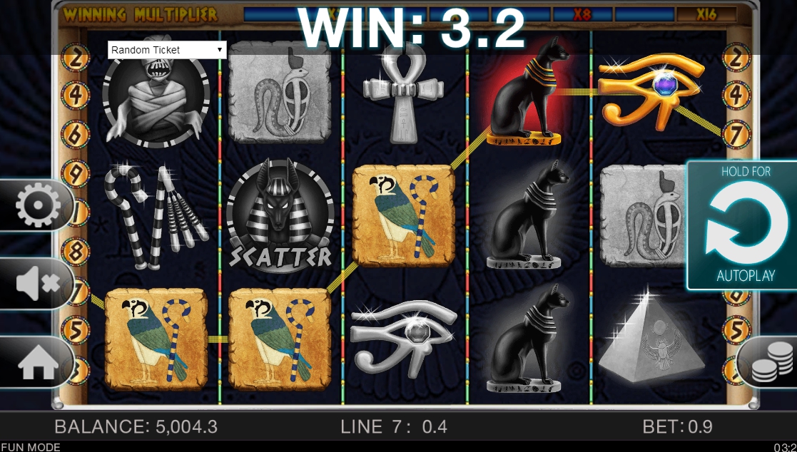 Чтобы получить бесплатные вращения, вам нужно собрать на одной линии выплат три или больше знаков головы Анубиса, в результате в вашем кармане окажутся 15 вращений.