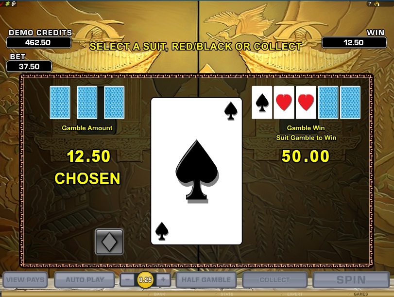 В игровом автомате имеется игра по равным шансам или так называемая игра на удвоение. В ней игроку предстоит отгадать цвет карты или ее масть.