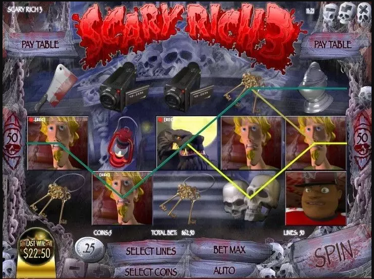 В Scary Rich 3 игроку предлагается приключение, в ходе которого ему придется охотится за призраками и крупными выигрышами. А реализовать все это игрок сможет с помощью пяти игровых барабанов с красочной 3D графикой.