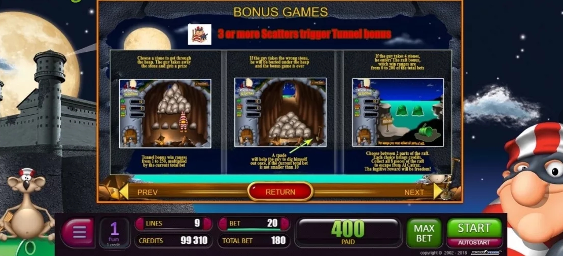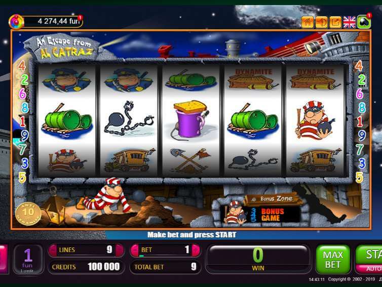 Компания Igrosoft позаботилась в игровом автомате An Escape From Alcatraz о графических символах и музыкальном сопровождении, которое позволяет перенестись во время «золотой лихорадки» и гангстеров.