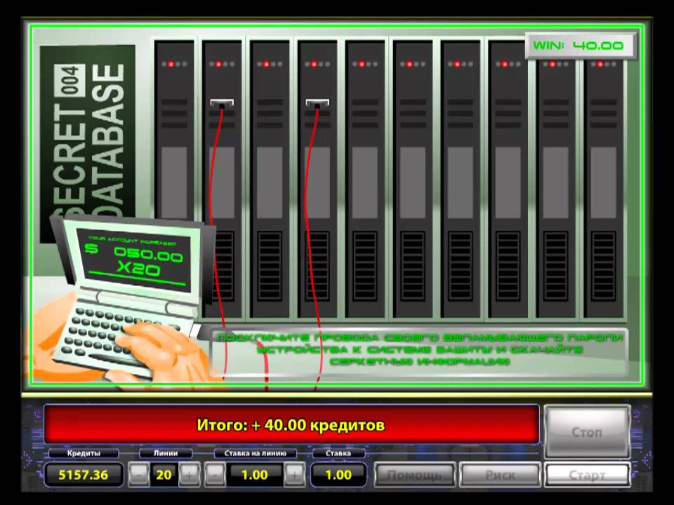 В данном видеослоте игрок будет выступать в роли хакера-профессионала, а целью будет ни что иное, как ограбление крупнейшей мировой сверхсекретной банковской интернет-сети.