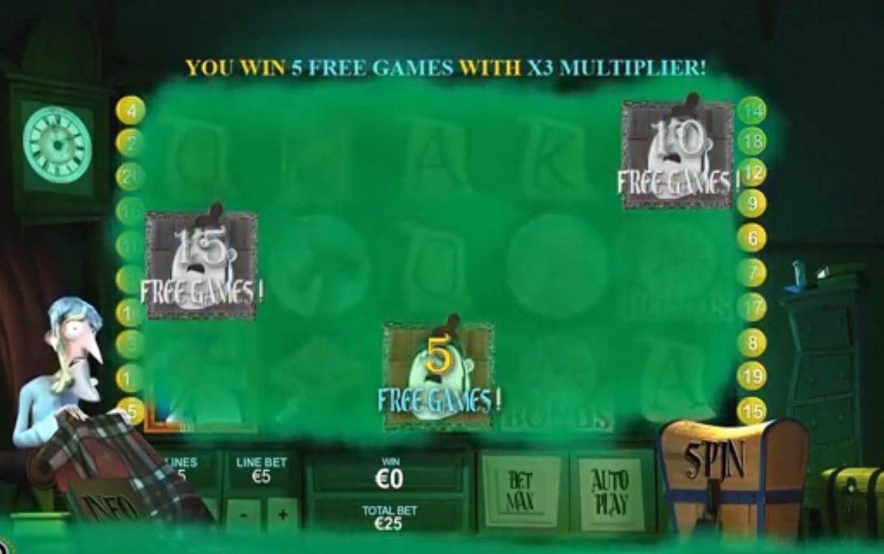 Если выпадет пять изображений призрака, то кроме бонусных вращений общая ставка игрока будет умножена на пятьсот!