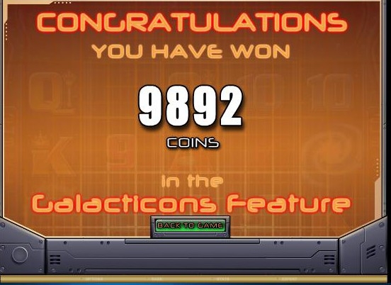 В бонусной игре под названием Big Bang инопланетяне улетают в черную дыру, которая является дополнительным диким символом. С каждым вращением при игре бесплатных вращений она путешествует и находит себе новое место, поглощая все вокруг. Все это происходит под милую мелодию, и никакого драматизма в этом сюжете вы даже не почувствуете. И даже, наоборот, будете радоваться хорошим выплатам. За что мне и нравится этот игровой слот. А когда черная дыра засасывает и млечный путь, выплаты умножаются в 2 раза. Такой нестандартный подход к игре предлагает нам игра Galacticons от компании Microgaming. Советую попробовать.