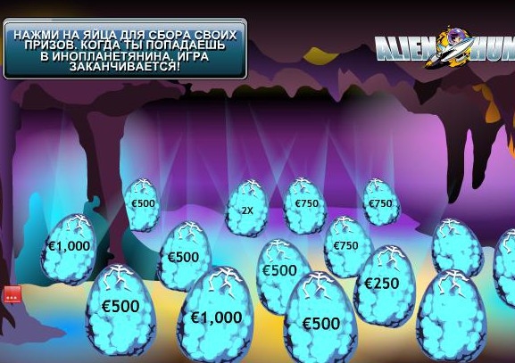 В игре есть бонусная игра, в которой можно получить потрясающие выплаты. Однако тут все зависит от вашего везения. Я выбирала яйца до тех пор, пока не попалось яйцо инопланетянина, а попалось оно мне в самом конце, поэтому удалось набрать довольно хороший выигрыш – настоящий клад для игрока, поэтому бонусная игра стоит того, чтобы вкладывать в игру и надеяться на то, что с призом обязательно повезет.