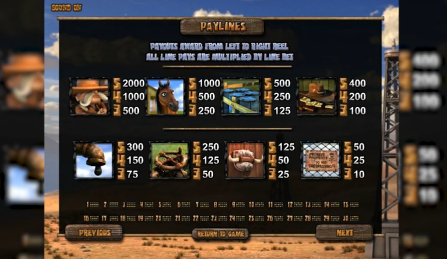 Главным символом этой игры выступает изображение ковбоя, который принесет пользователю четыреста кредитов. Отличительной особенностью этого игрового автомата являются три бонусных раунда.