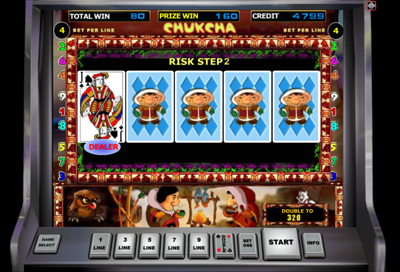 Играя на данном видеослоте можно сорвать джек-пот, необходимым условием для выигрыша является следующее: на одной активной линии должно появиться не меньше пяти символов, на которых есть надпись «CHUKCHA».