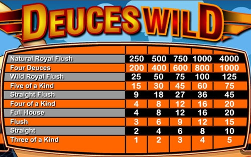 В этой игре в отличии от остальных разновидностей видео покера важными фигурами в игре являются двойки. В зависимости от того, какое количество этих карт вы получите при раздаче, зависит исход игры.