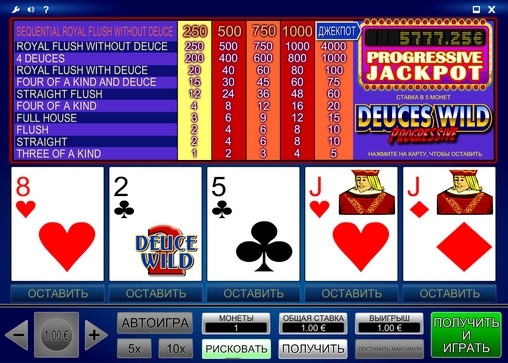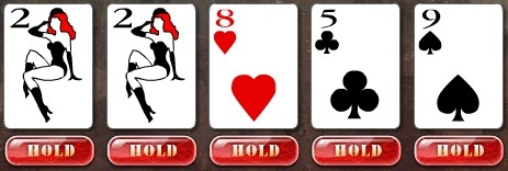 Больших выигрышей с одной двойкой не получите, поэтому, если есть любая комбинация карт, необходимо их зафиксировать. Отдавать карты можно только если есть 4 карты на Роял Флеш.