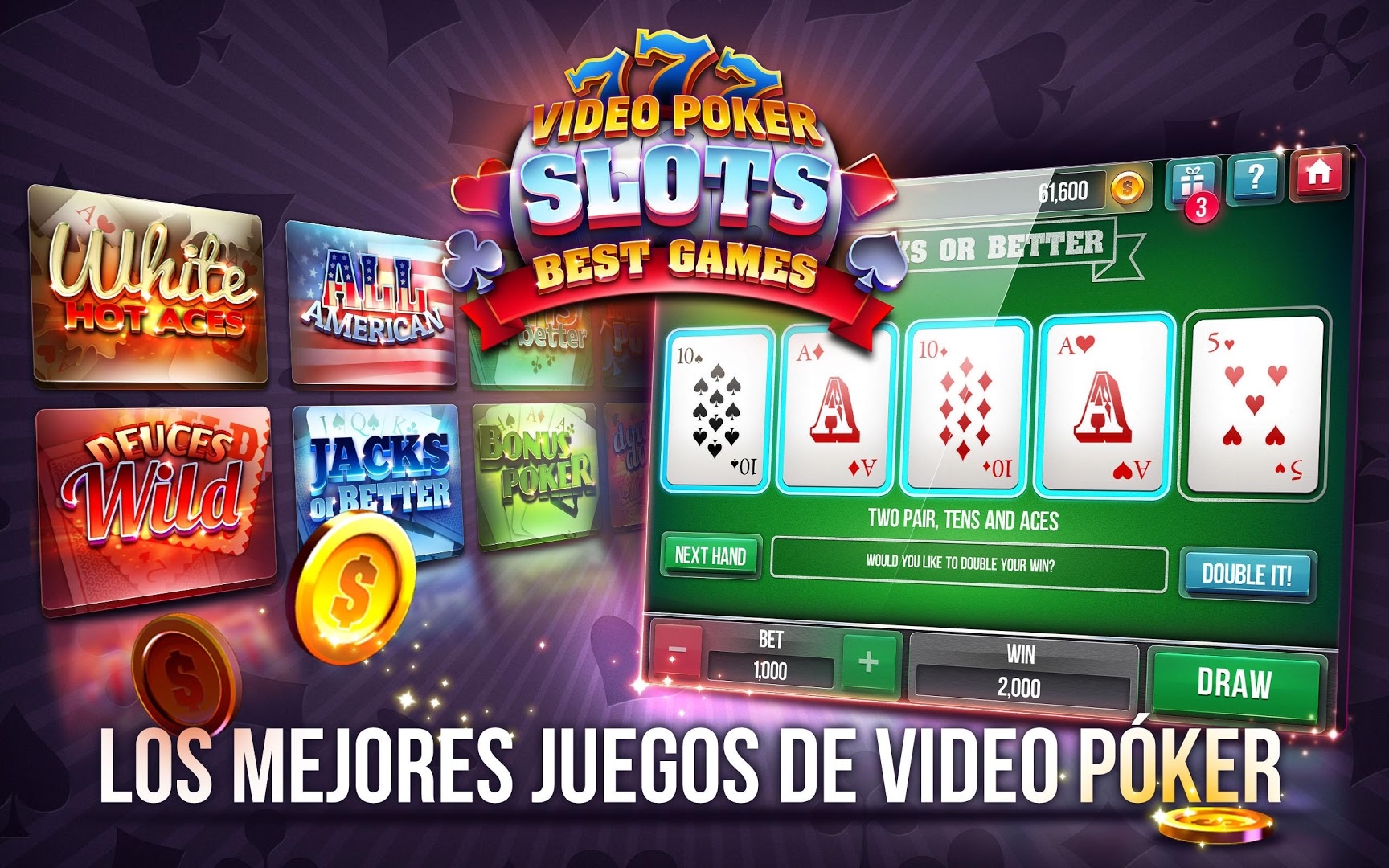 Это все игра с участием джокеров; - по распределению выигрышных комбинаций: десятки и выше, валеты и выше; - с определенными бонусными совпадениями: двойной бонус и тузы и картинки.
