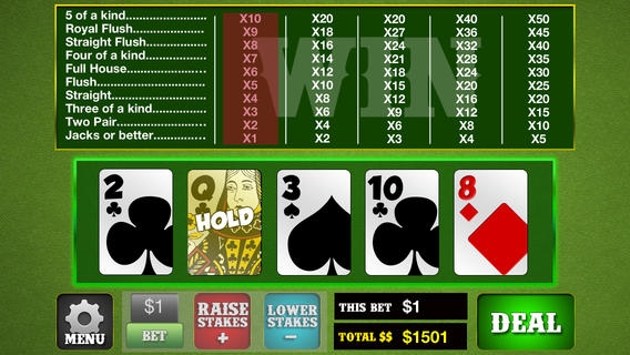 Правила видеопокера не сложны для понимания. При раздаче игроку выдают 5 карт. Ему можно обменять не нужные карты на любые другие всего один раз. После чего на руках у игрока должна быть собрана определенная комбинация, которую можно найти в таблице выплат. Комбинации такие же, как в обычном покере, только здесь не нужно сравнивать карты игрока с картами дилера. Выигрыш игрок получает, если собрал комбинацию.