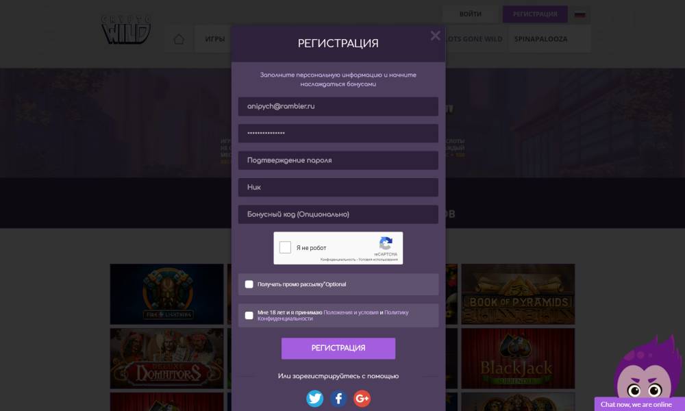 Играть на деньги в КриптоВайлд, получать бонусы и пользоваться другими услугами разрешается лишь совершеннолетним посетителям. Не допускаются жители некоторых стран и партнеры оператора.