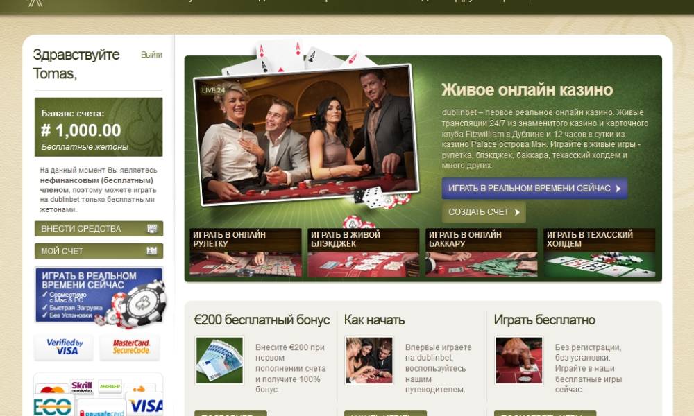 Играть с живыми дилерами в Dublinbet Casino можно в блэкджек, баккара, рулетку и техасский холдем.