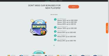 Новый игроки получают по двадцать фриспинов в течение десяти первых дней при условии, что они пополняют счёт минимум на двадцать евро.