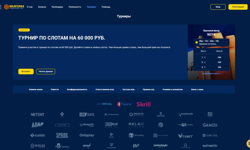 Расписание турниров казино Голдфишка уточняйте на официальном сайте заведения. Они могут проводиться на разных условиях, поэтому не забывайте проверять все нюансы правил.