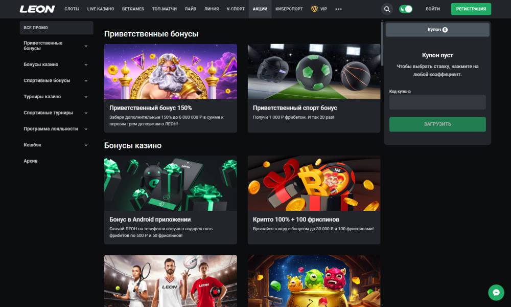 В общем, сайт Леон казино сочетает стильный дизайн, удобную навигацию и широкий функционал.