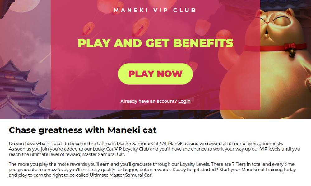 В обзоре рассматривается интернет-казино Maneki, открывшееся в 2019 году. Его символов стал белый котенок Манеки из мира японских поверий. Он должен принести удачу всем любителям азартных игр.