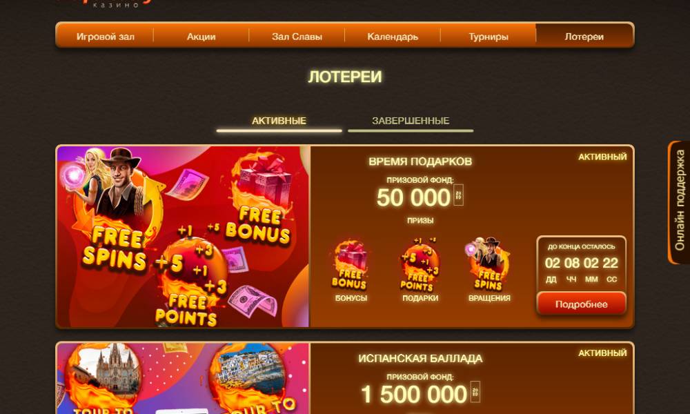 Расписание турниров и лотерей доступно в тематических разделах портала.