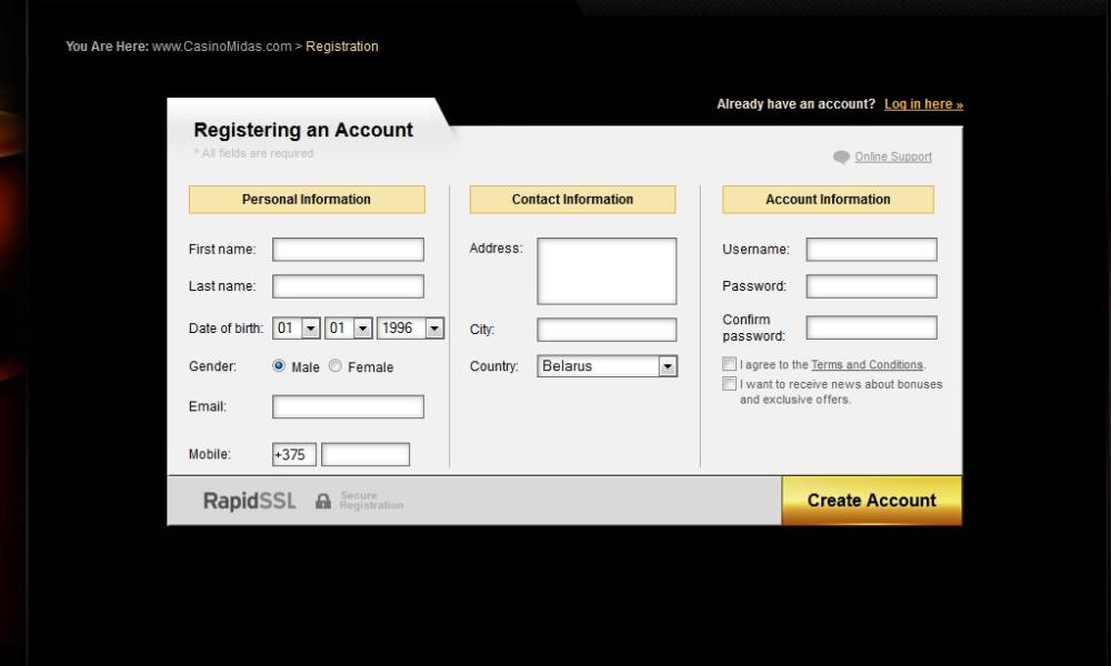 Играть в казино «Мидас» можно в долларах, евро и фунтах.